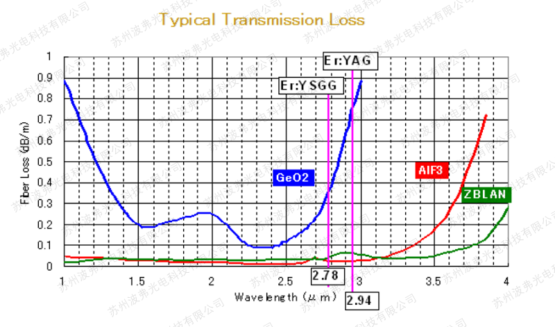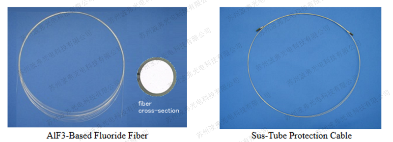 AlF3基光纤是以AlF3为主要成分的多组分氟化物光纤。与 ZBLAN 氟化物光纤相比,它们在激光损伤阈值和防水性方面更胜一筹,并且在2.9μm处具有比 GeO2光纤更小的传输损耗。 它们已在世界各地用作2.94μmEr-YAG激光治疗设备的光导。 此外,由于具有0.3至3.5μm的宽透明窗口,它们还可用作中红外光谱的光导。