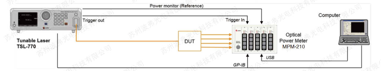 该激光器与Santec的功率计MPM-210和偏振控制器单元PCU-100集成,以创建交钥匙WDL或PDL测量解决方案。Santec提供用于控制系统的软件以及动态链接库(DLL),以支持使用各种编程语言进行系统集成和控制。